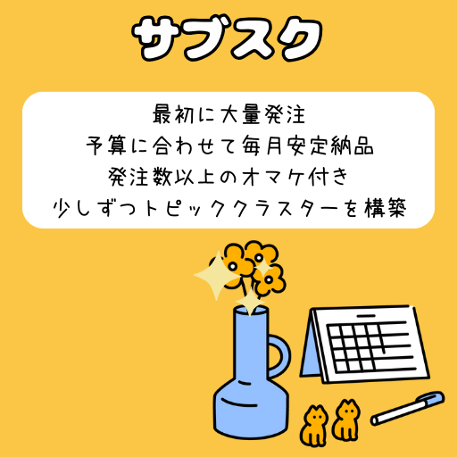 最終的にサブスクで少しずつトピッククラスターを構築することで、中長期的なSEO対策として機能します。
